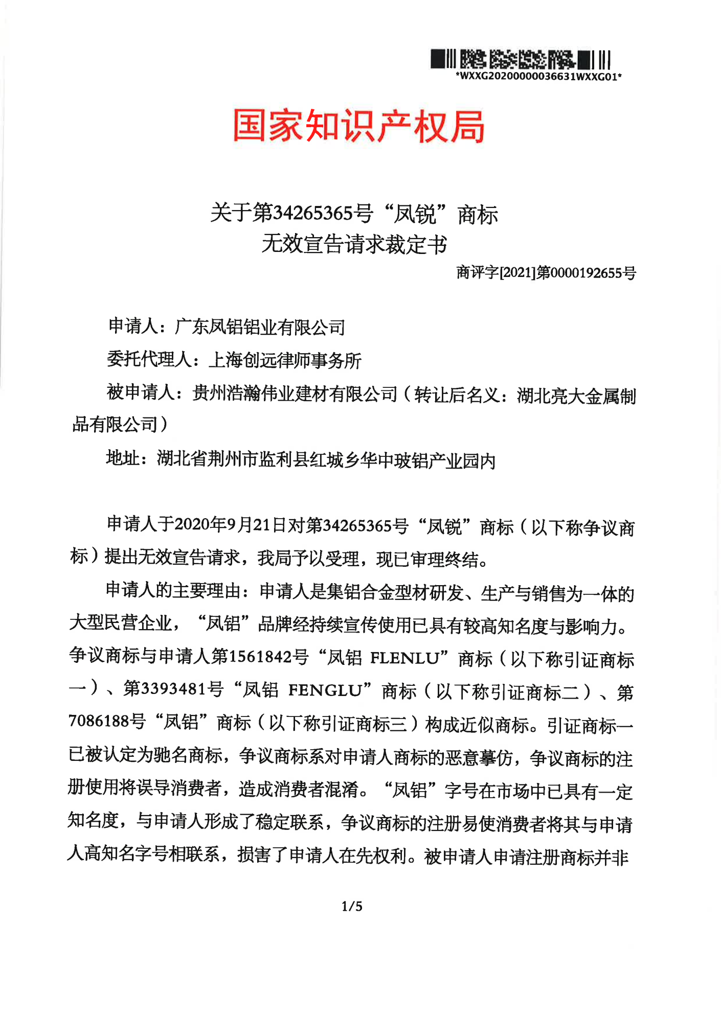 湖北辉知队 | 国家知识产权局:“凤锐”商标无效
