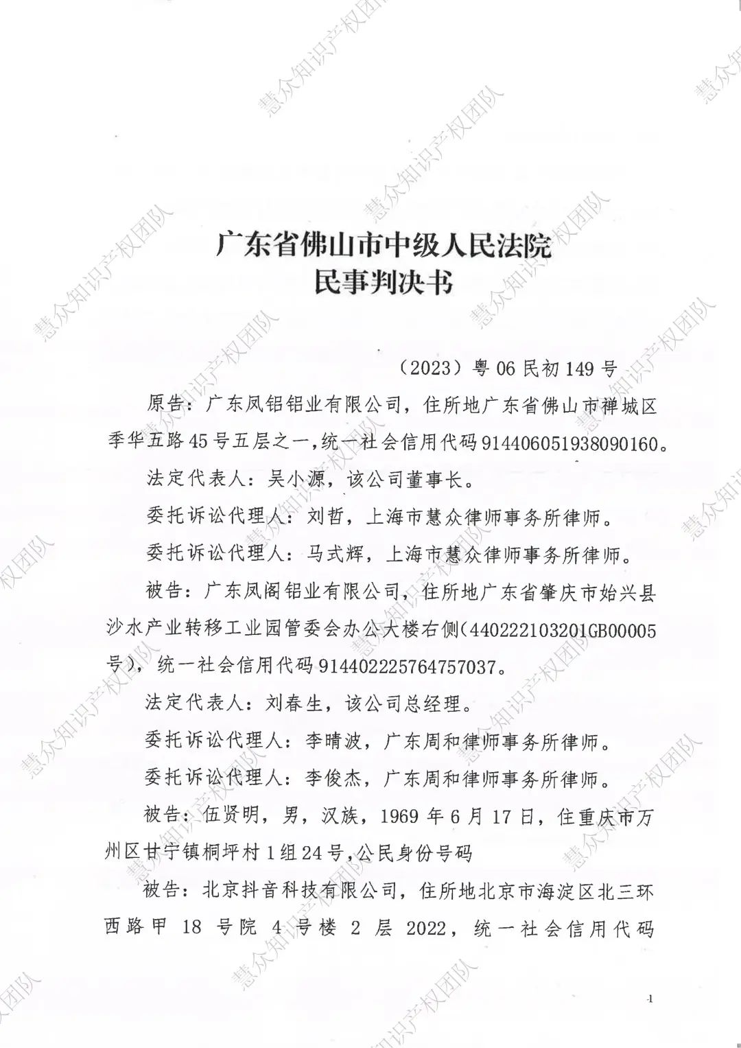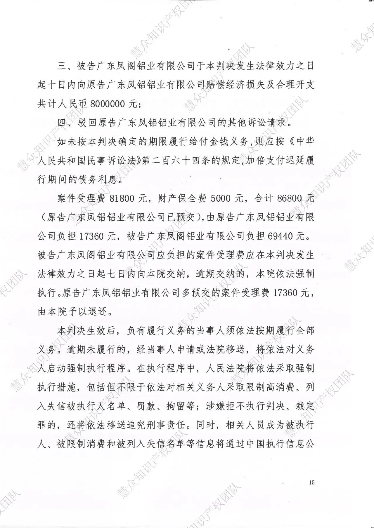 湖北判赔800万!辉知队代理“凤铝”商标维权案胜诉